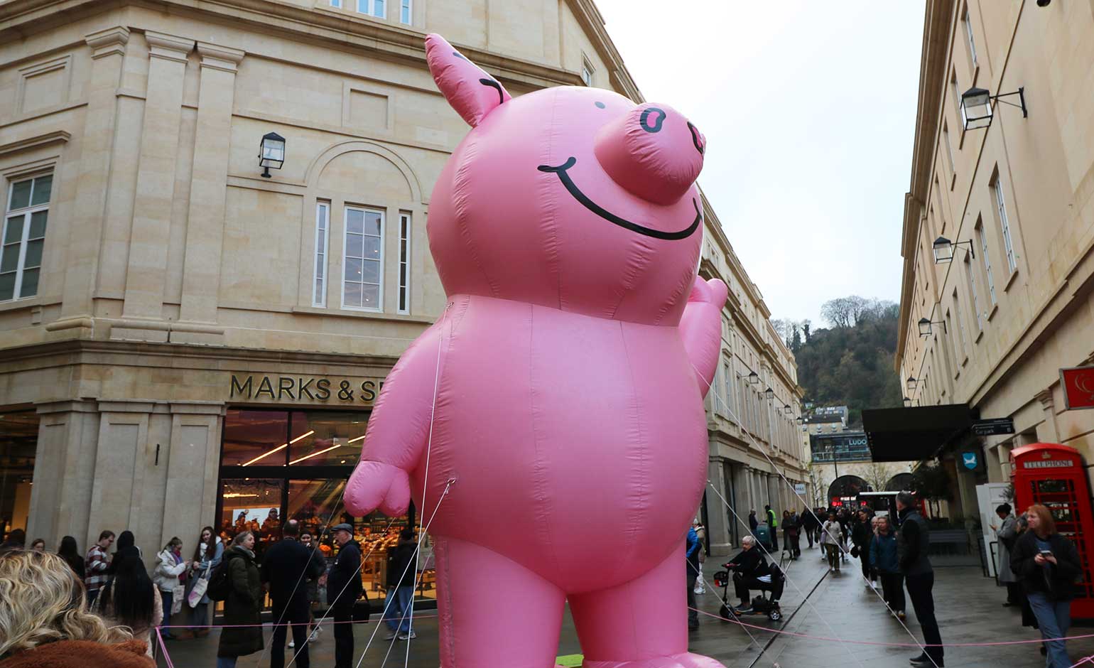 A giant inflatable Percy Pig outside the new store | Photo © Bath Echo