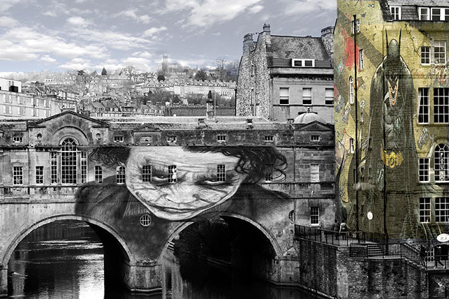 “My work urbanises Bath without physically changing its familiar face, whilst appreciating the skills of the stone mason and the graffiti artist.”
