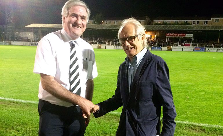 During Tuesday evening’s home match against Oxford Town, club chairman Paul Williams was accompanied by lifelong Bath City fan and film director Ken Loach who gave a joint Q&A presentation to fans from the pitch during half-time.