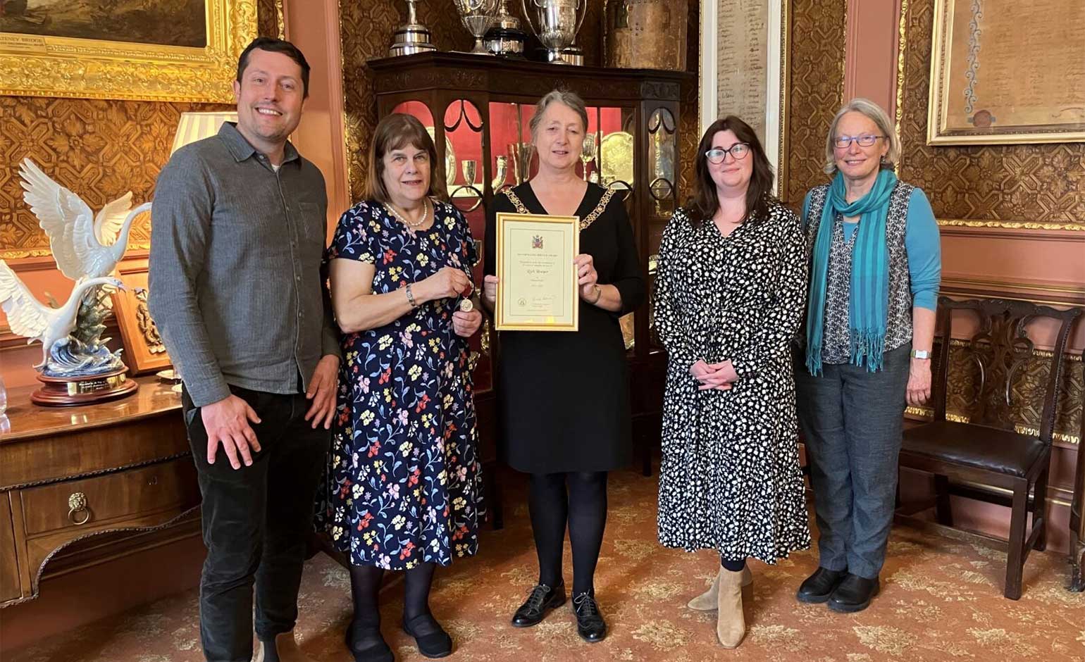 Ruth Hooper (second from left) receiving the medal from Mayor of Bath, Cllr Dine Romero | Photo © Designability