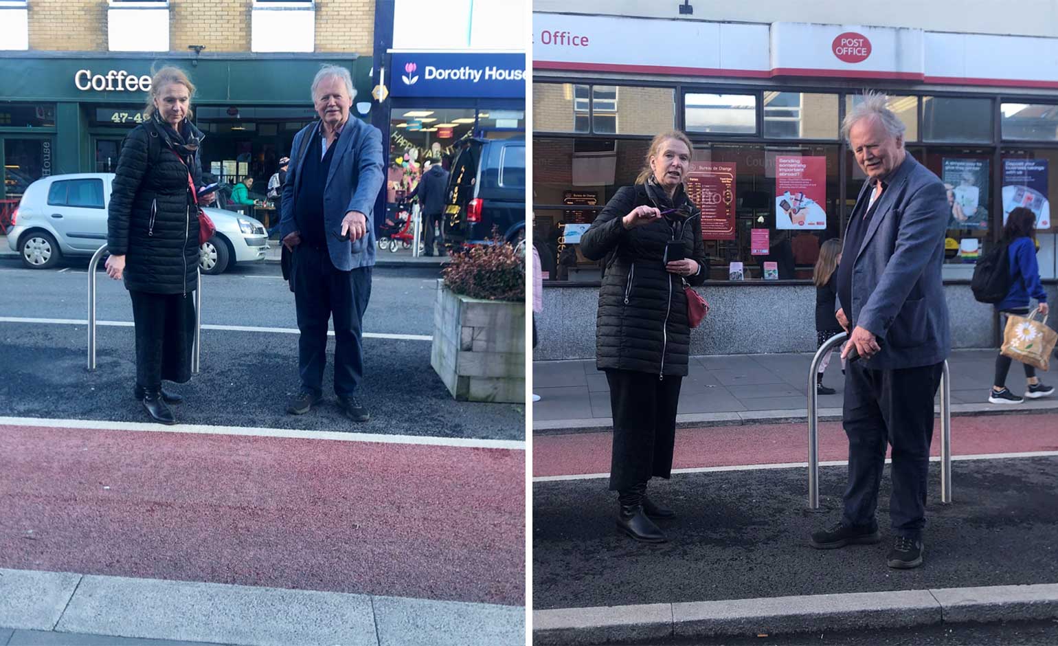 Looking at the cycle lane on Keynsham High Street from different perspectives
