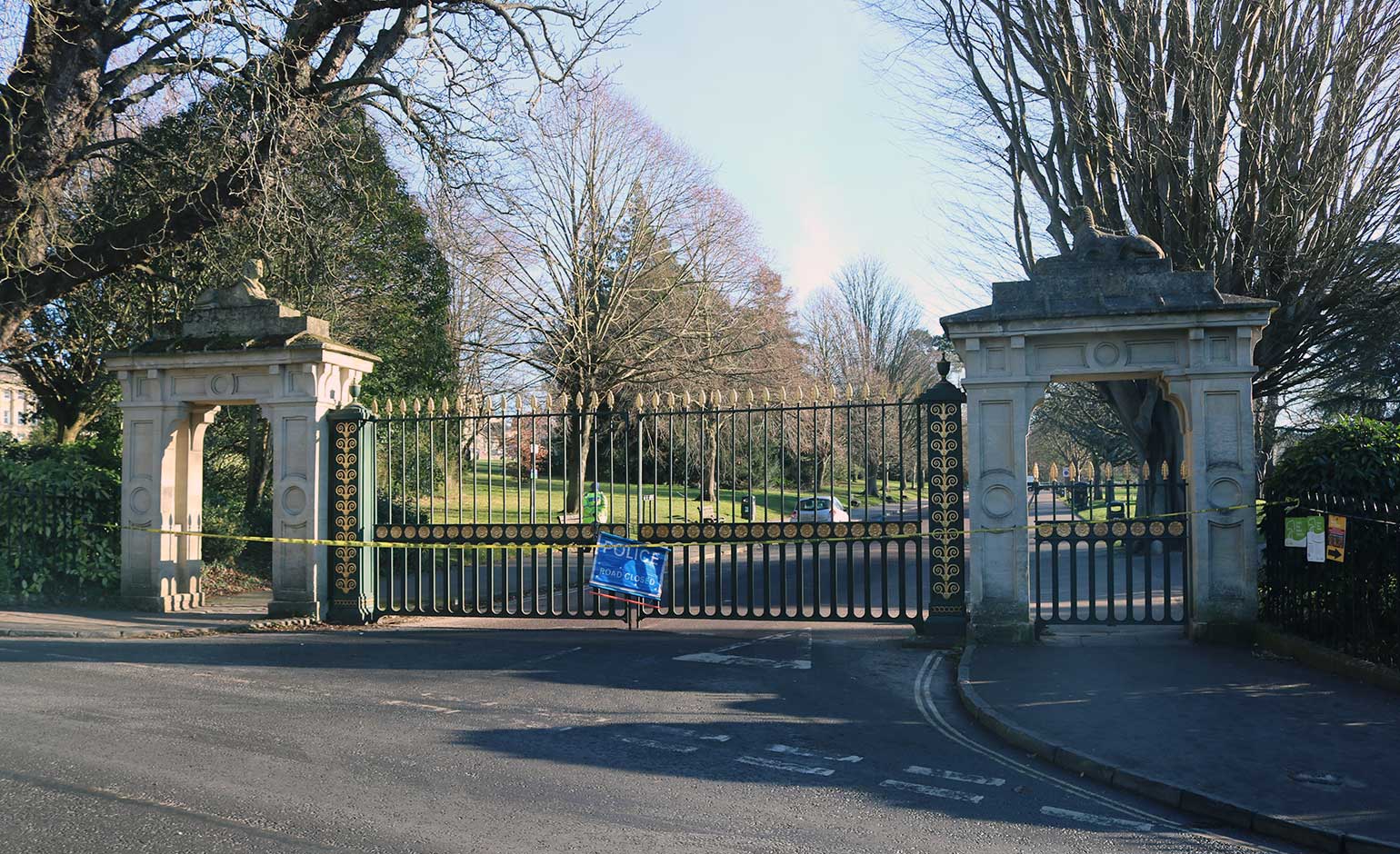The closed gates at the entrance to Royal Avenue | Photo © Bath Echo