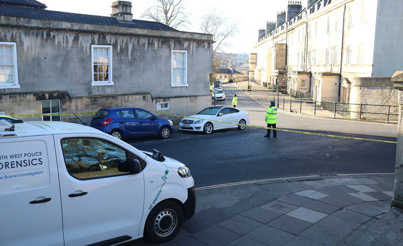A forensic officer working on Royal Avenue | Photo © Bath Echo