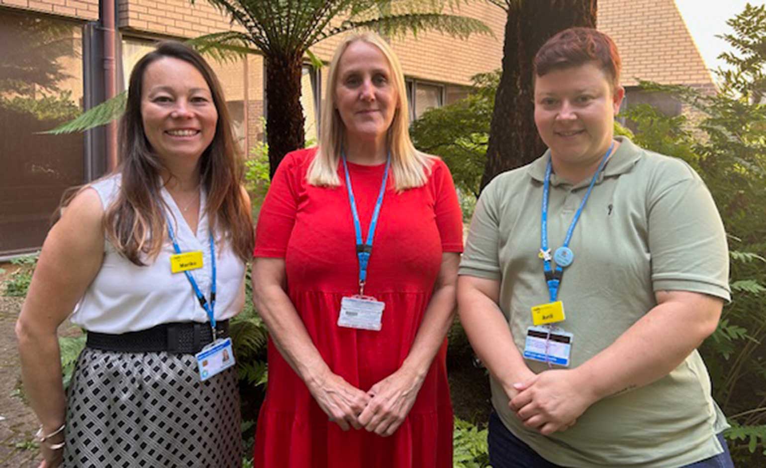 Patient access navigators Mariko (left) and Av (right) with Tina (centre), a Diabetes Technologist | Photo © RUH