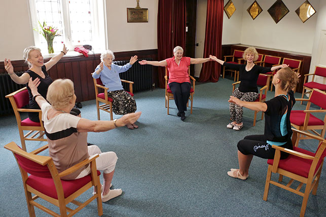 The classes have been modified for those in later life with many of the dance moves taking place seated or standing while using the backs of chairs for balance.
