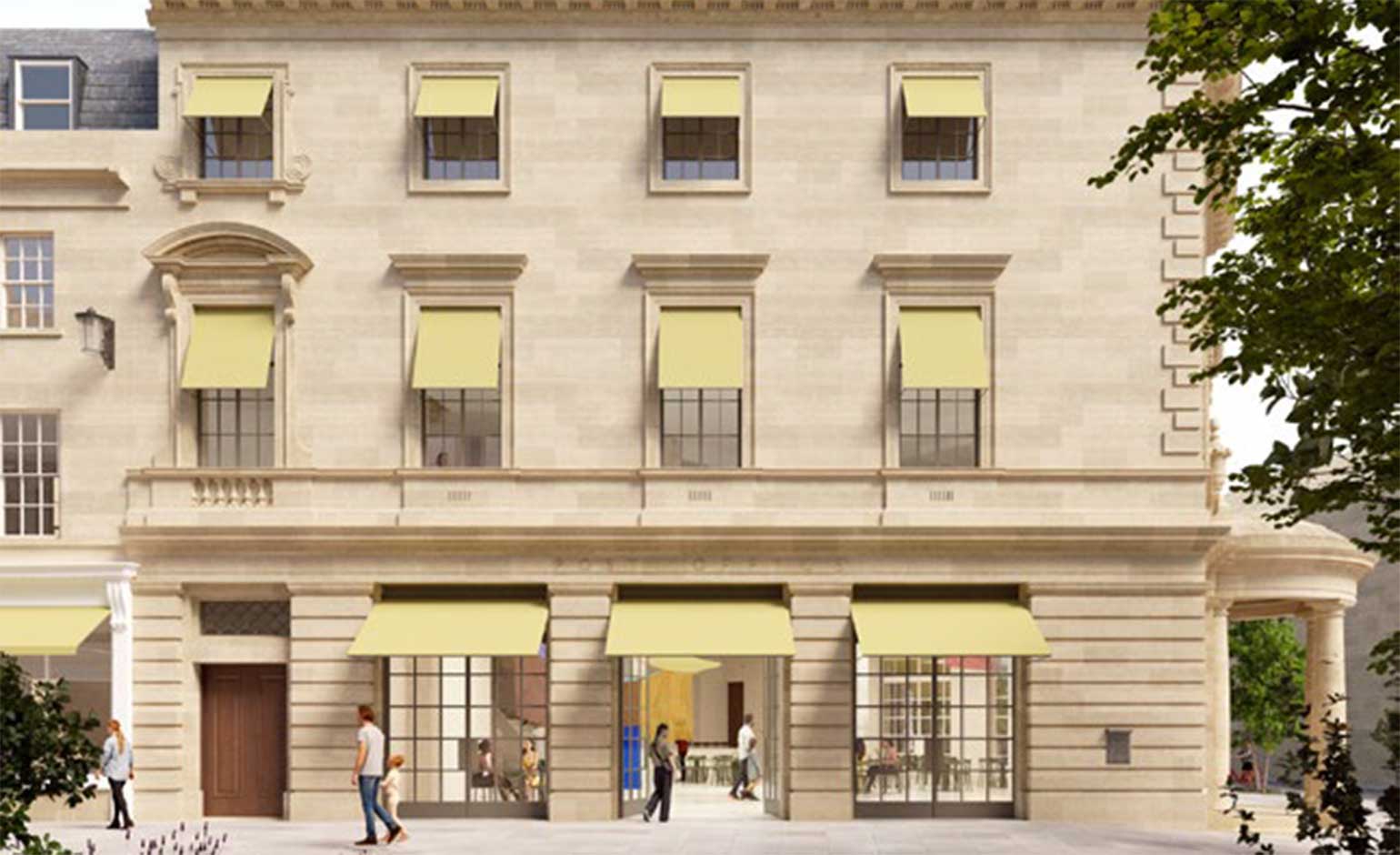 The site includes the Old Post Office building at 25-27 New Bond Street, the Regency terrace houses at 21, 23 and 24 New Bond Street and the courtyard behind.