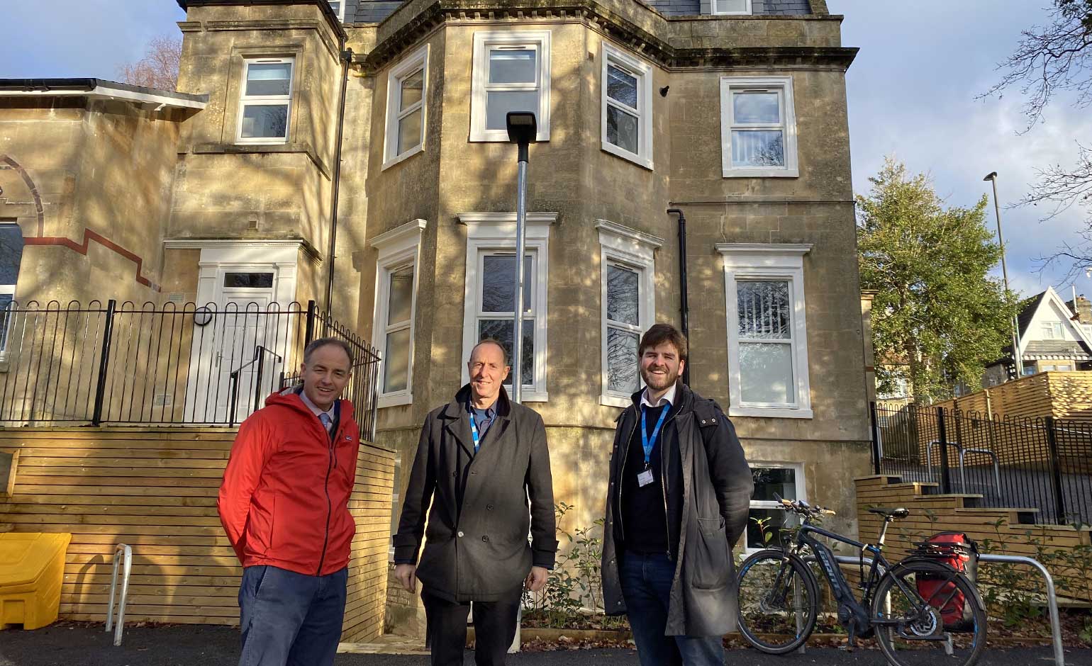 Tom Davies, Mike Chedzoy and Tom Hugo outside 117 Newbridge Hill | Photo © John Wimperis