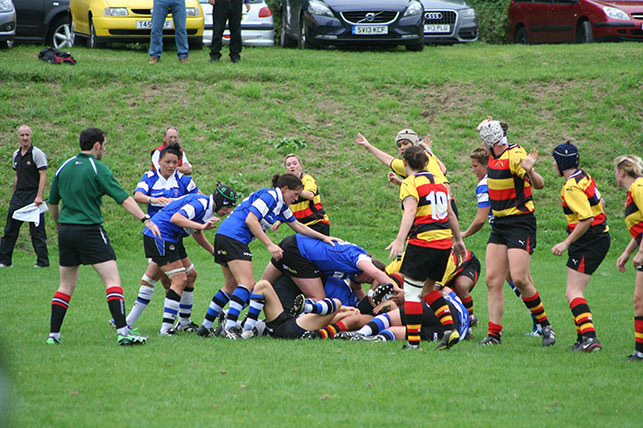 Bath Ladies responded well to the visitors’ early lead, keeping their heads up defensively and showing early signs of dominance at the set piece, stealing a number of lineouts and contesting well in the scrum. Good patience and a sustained period of skilled handling and possession saw Bath Ladies take their first reward after 25 minutes, with Bath centre Kat Southwell crossing for a try in the corner.