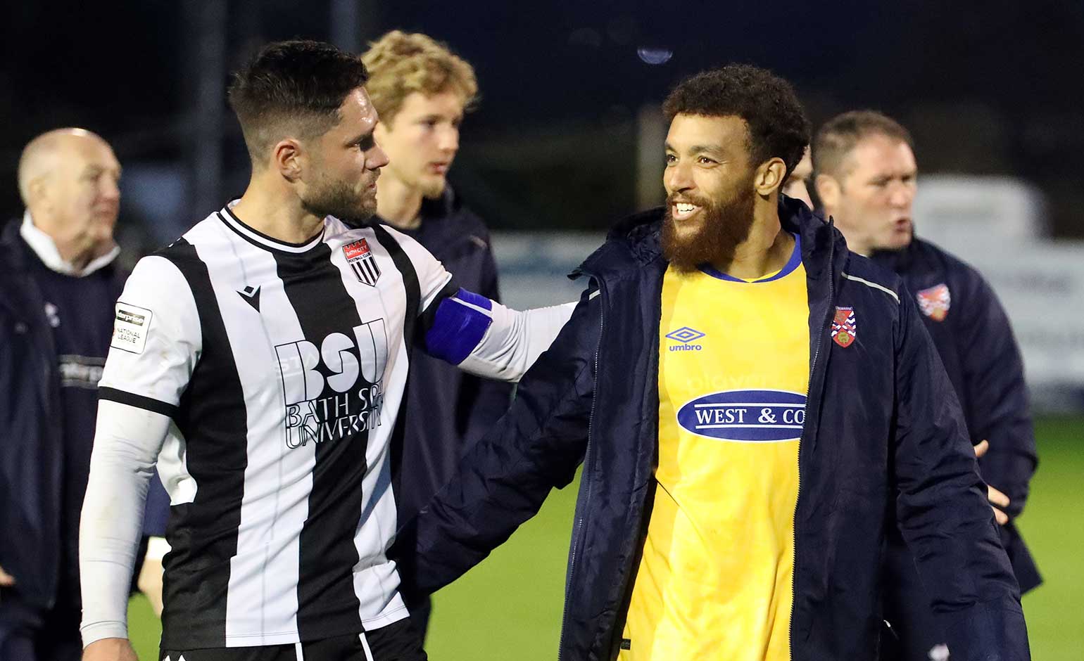 Donovan Wilson as a Dagenham & Redbridge player at the end of the East Londoners’ match against Bath City at the Cannon Clarke Stadium @ Twerton Park on Saturday 8th November. He has now signed for the Romans until the end of the season | Photo © Simon Howe