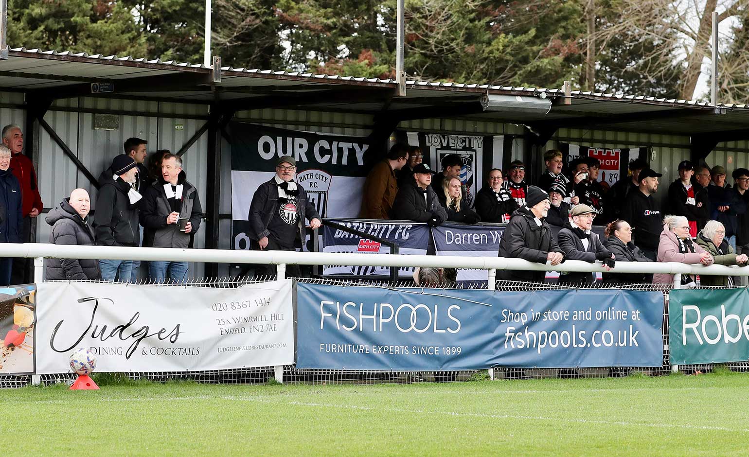 Bath City supporters watch their side draw 1-1 with North London outfit Enfield Town in Enterprise National League South on Saturday 28th February | Photo © Simon Howe