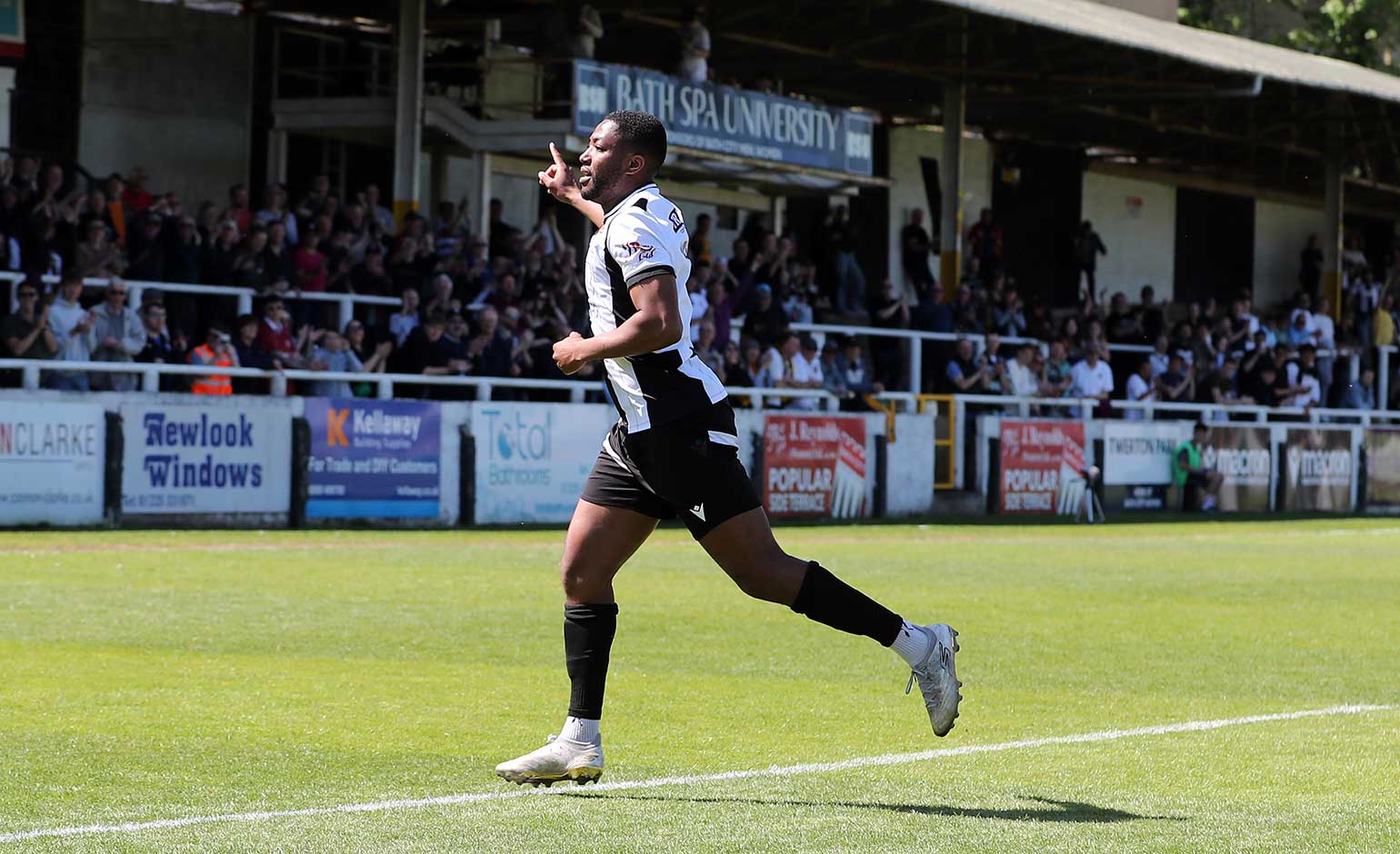 Scott Wilson celebrates after opening the scoring for Bath City against Maidstone United with an early goal on Saturday 25th April | Photo © Simon Howe