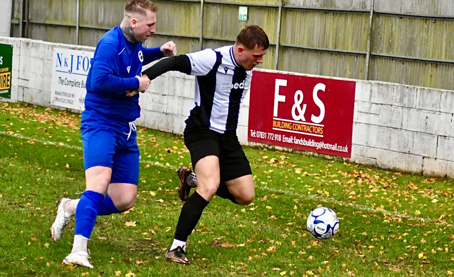 Odd Down, black and white, tussle with Wells City at the Lew Hill Memorial Ground on Saturday 1st November | Photo © Odd Down FC