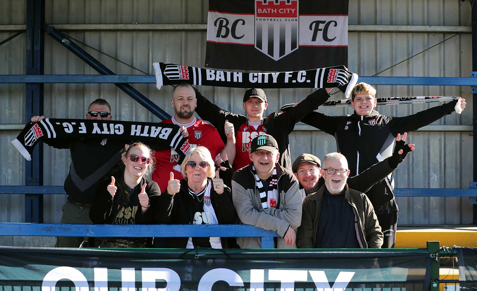 Some of the Bath City fans who journeyed to Tonbridge Angels on Saturday 21st March for what proved Darren Way’s final match as the Romans’ boss | Photo © Simon Howe