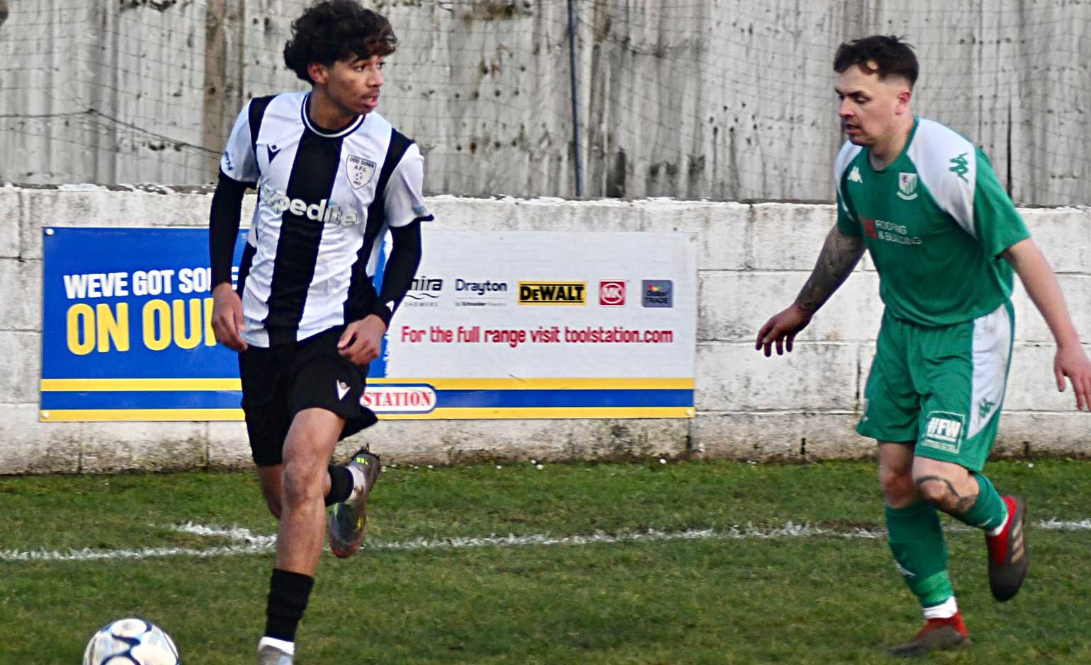 Bad weather has meant Odd Down, black and white, have not played since this match against Welton Rovers on Saturday 10th January | Photo © Odd Down FC