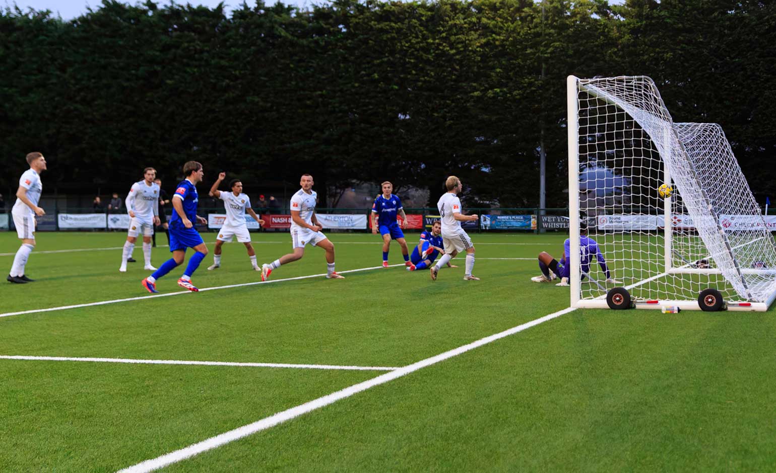 Larkhall Athletic net their third goal against Bashley at the Camella Stadium on Saturday 15th November | Photo © Phil Scovell