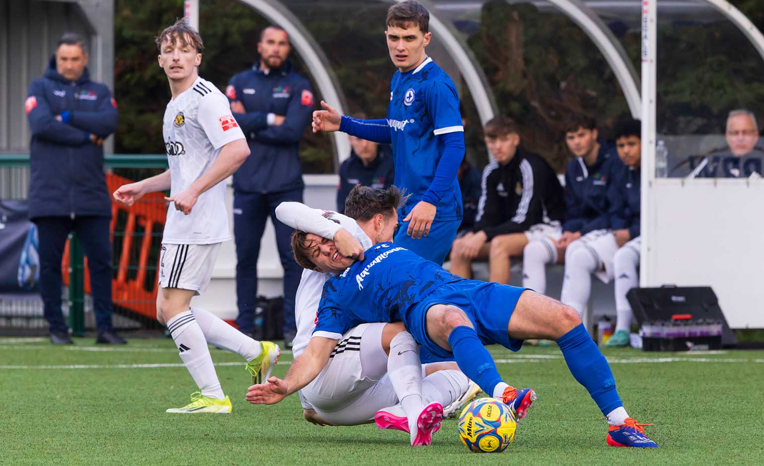 Play becomes overly physical at the Camella Stadium during the Larkhall Athletic versus Bashley match | Photo © Phil Scovell