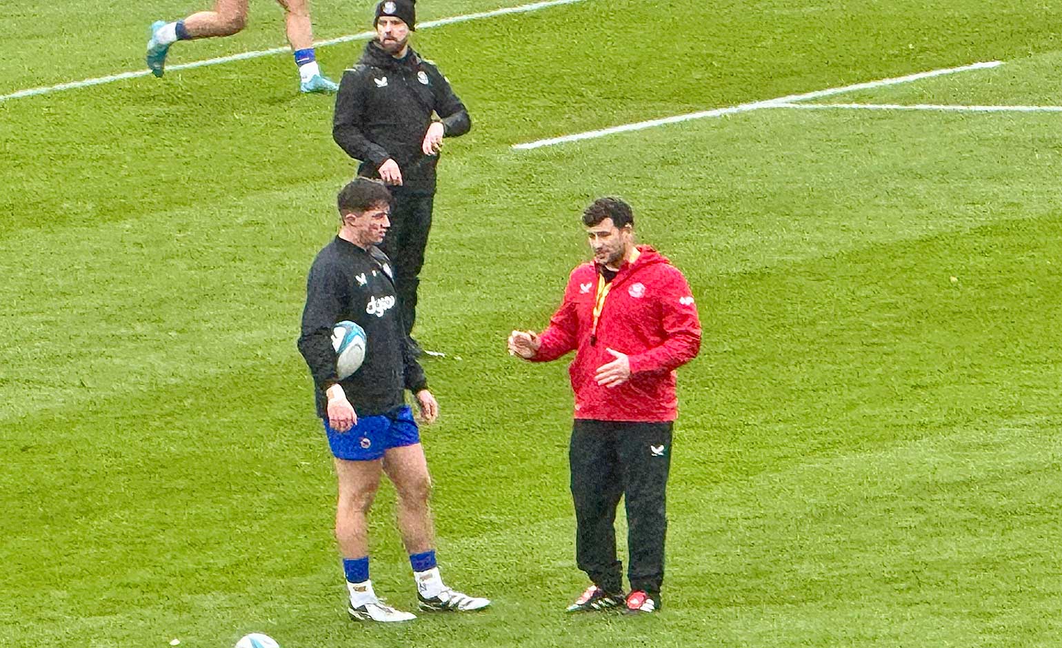 Ryan Davis coaches during the warm-up before the Bath Rugby versus Sale Sharks clash in the PREM Rugby Cup | Photo © Richard Briggs